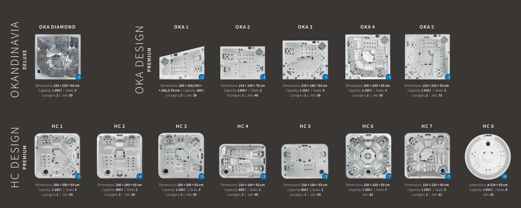 Die Whirlpool-DIAMOND-Serie OKANDINAVIA hebt das Wellness-Erlebnis in himmlische Höhen. Er hat seine Wurzeln im zeitlosen skandinavischen Design und wird besonders von anspruchsvollen Kunden geschätzt. Neu ist die sogenannte „hybride Position“, bei der man eine Liege nicht nur in liegender, sondern auch in sitzender Position verwenden kann.