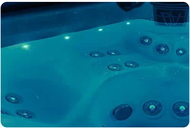 Die exklusive Farbtherapie-Beleuchtung ist eine direkte Unterwasser-Stimmungsbeleuchtung, die in die Seitenwand des Whirlpools eingebaut ist. Sie besteht je nach Whirlpool-Typ aus 10 bis 20 LEDs, die in Harmonie mit der im Whirlpool installierten zentralen Unterwasser-Farbtherapiebeleuchtung leuchten.