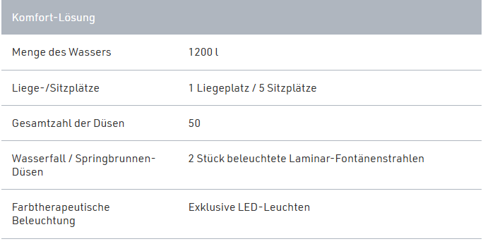Mit seinem stilvollen Design und seiner Funktionalität setzt der Wellis Prague neue Massstäbe in Sachen Wellness und Komfort. Ob für erfrischende Sommerbäder oder entspannende Winterabende – dieser Whirlpool ist ein wahrer Allrounder, der Ihr Zuhause in eine private Wellnessoase verwandelt.